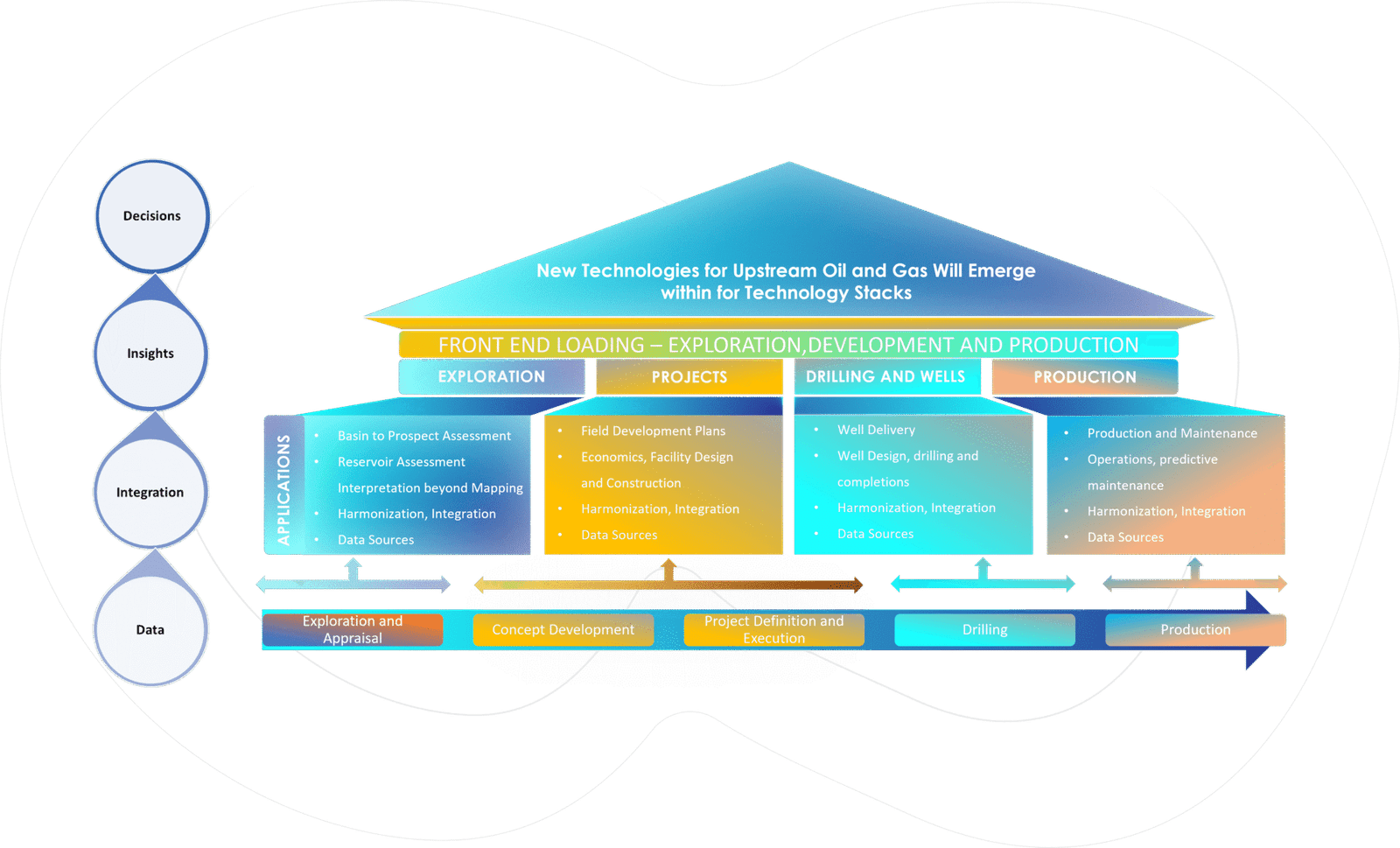 At Energon Consulting Group (ECG), we offer an integrated Front-End Loading (FEL) program that spans the full oil and gas lifecycle, from basin screening and prospect evaluation to well delivery and optimized production. Through a new technology stack lens, we harmonize and integrate multi-scale data sources to enable interpretation beyond mapping, drive intelligent reservoir assessments, and deliver robust field development plans. Our approach connects subsurface insights with economic modeling, facility design, drilling